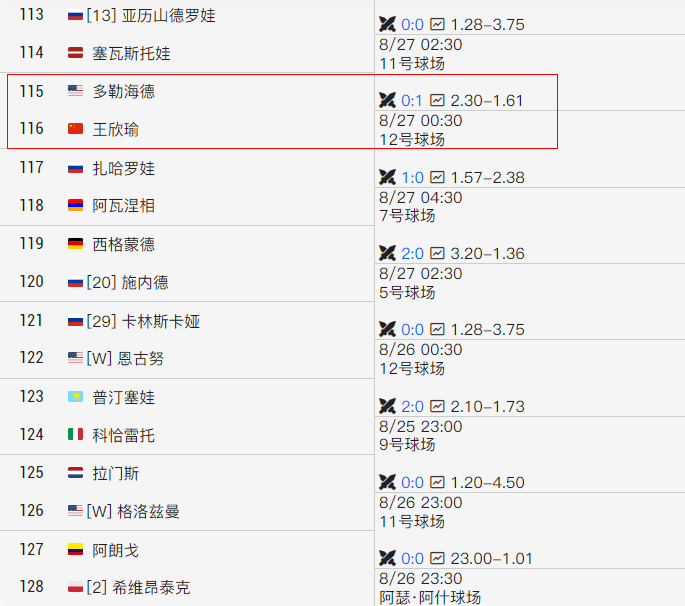 赛前,相关机构提前给出了数据分析,认为王欣瑜的取胜赔率1.67,多勒海德的赢球赔率2.30,也就是说,赔率更看好王欣瑜晋级,一方面是世界排名,另一方面是个人实力。