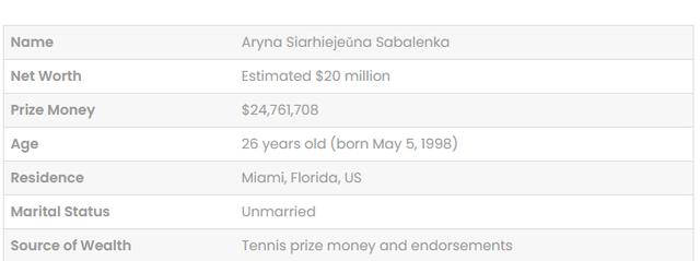 自辛辛那提公开赛夺冠以来,萨巴伦卡的职业生涯总奖金已攀升至2476万美元,而美国网球公开赛的冠军奖金为360万美元,因此她的总奖金已超过2800万美元,相当于超过19.8亿人民币,未来这一数字还将不断增加。