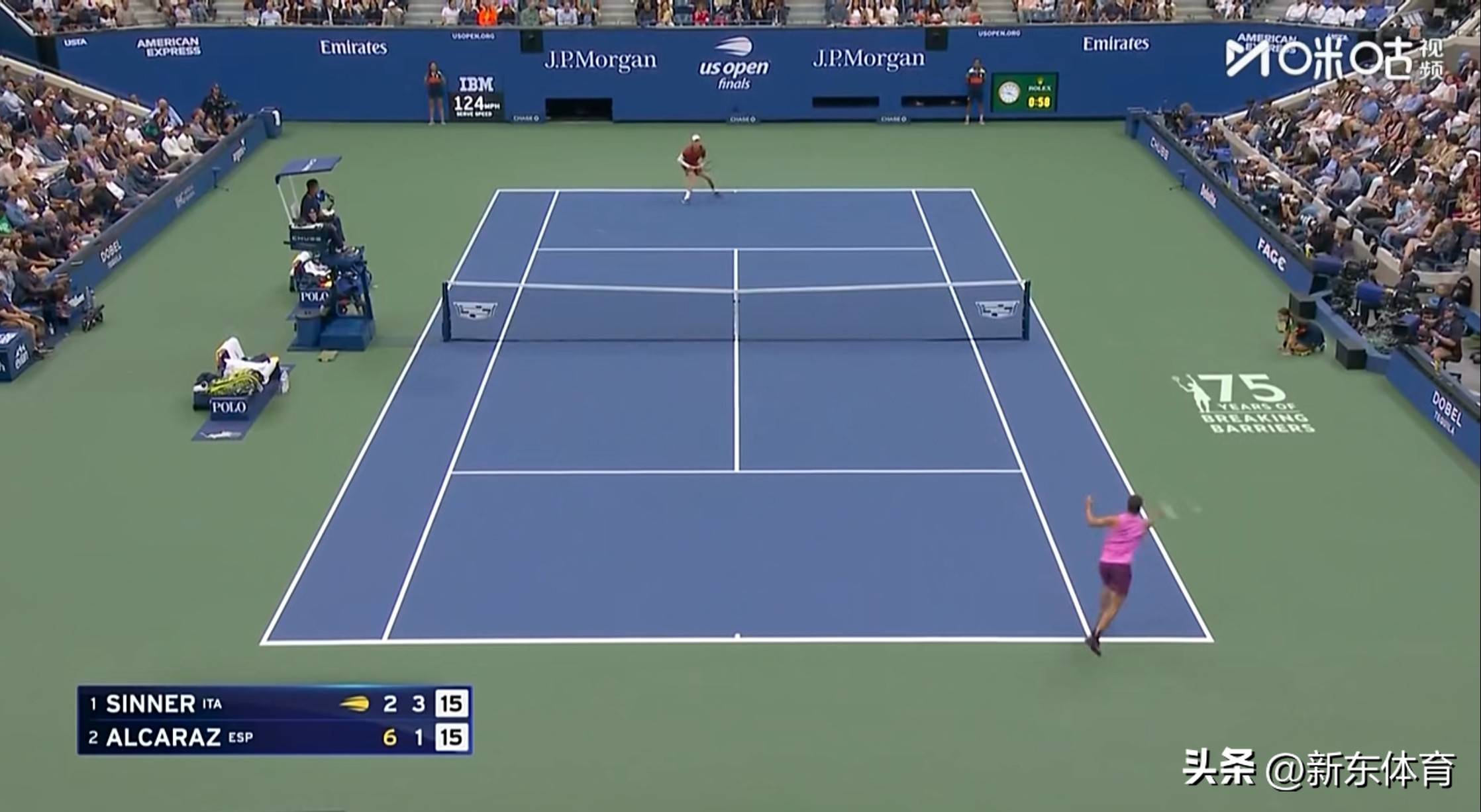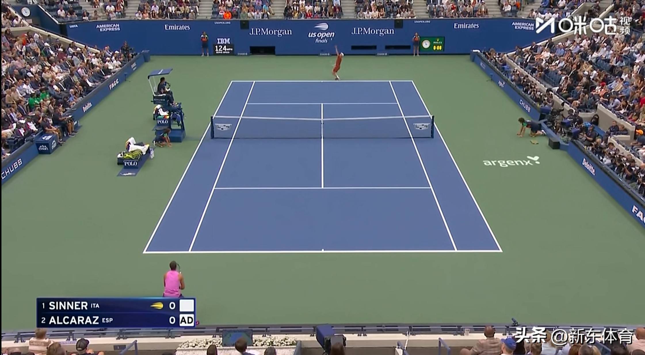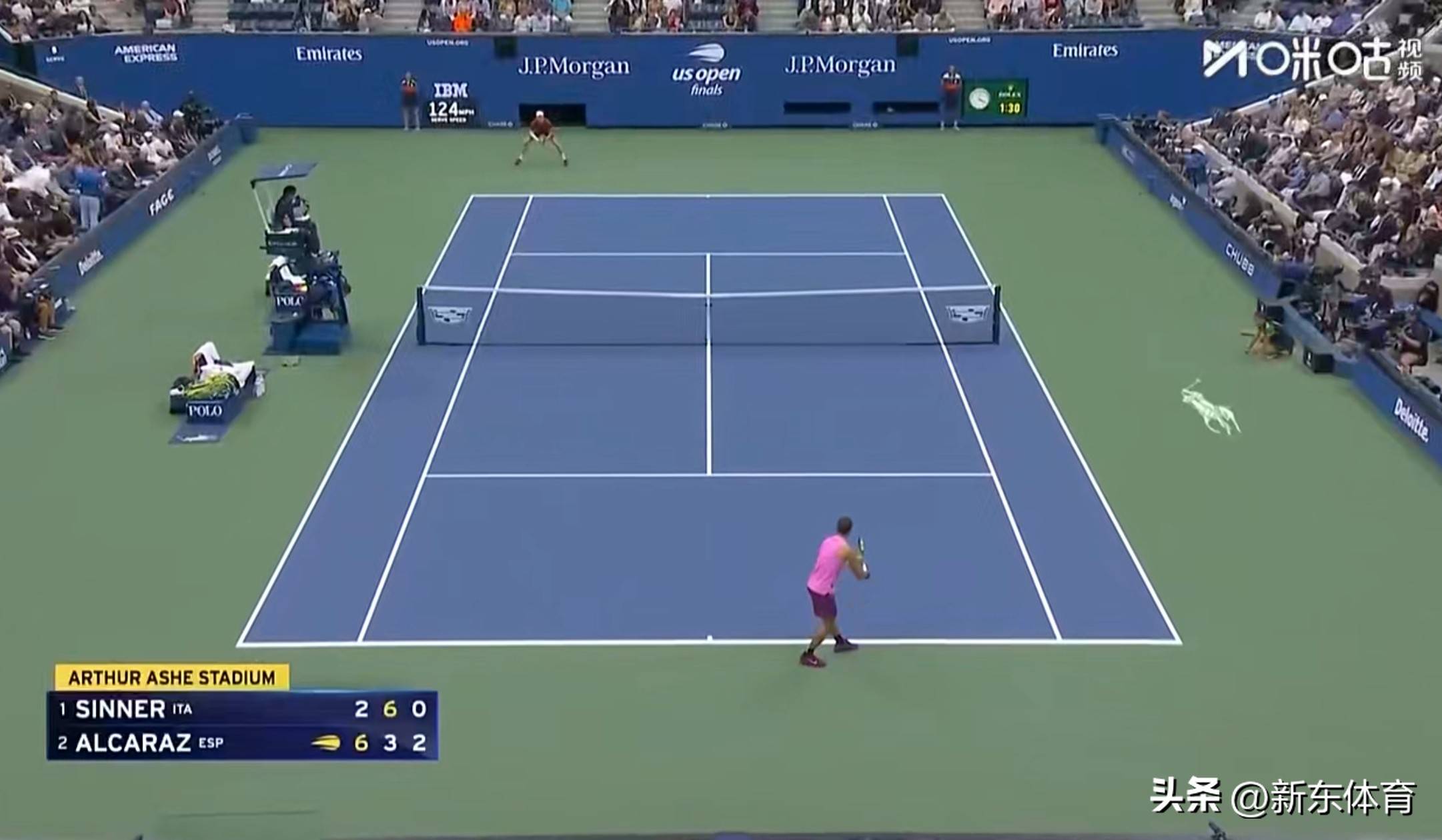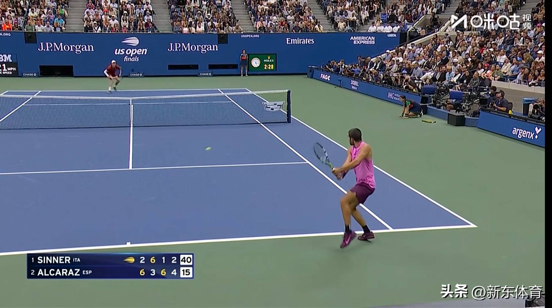 辛纳在关键时刻放手一搏,连续打出两个制胜分,取得0-30的领先。然而阿尔卡拉斯并没有慌乱,他凭借一记ACE球和一次高质量的发球上网连得两分,将比分追至30-30平。随后又是一记反拍制胜分,使比赛来到40-30冠军点。最后一分,阿尔卡拉斯采用发球上网战术,辛纳的回球稍稍出界,3-1拿下比赛。